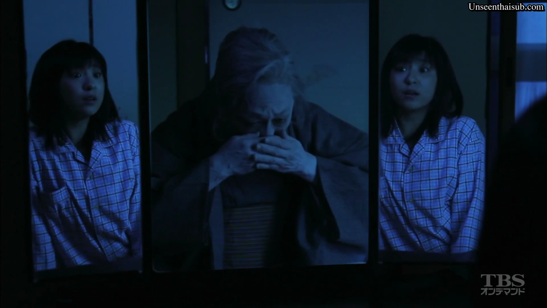 โมโมะกะที่กำลังจัดห้องอยู่ ก็พบว่าตัวเองถูกหญิงชราคนหนึ่งที่ถือมีดทำครัวล้อมไว้ โดยหญิงชราคนนั้นโผล่ออกมาจากกระจกสามด้านโบราณ